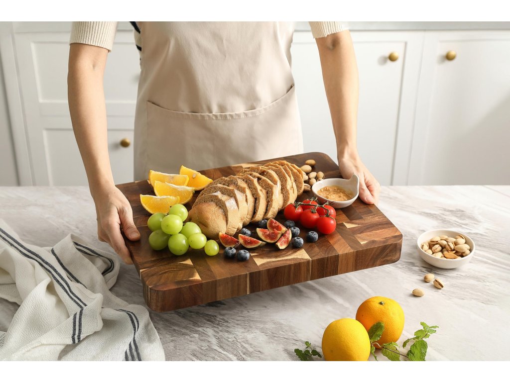 Wysokiej jakości duża deska do krojenia XinZuo z drewna akacjowego. Powierzchnia deski jest bardzo delikatna, a tym samym przyjazna dla ostrzy noży kuchennych. Od razu zaintryguje cię swą piękną fakturą. Solidna konstrukcja deski o tradycyjnej, płaskiej powierzchni.