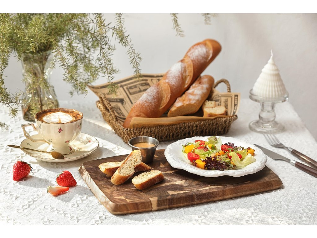 Każda deska przechodzi unikalny, wieloetapowy proces szlifowania, po którym jej powierzchnia, w tym krawędzie, jest bardzo gładka. Naturalny materiał umożliwia łatwe czyszczenie. Deska do krojenia ma grubość 1,9 cm i wykonano ją z materiału najwyższej jakości, w związku z czym niełatwo ją uszkodzić. Technika łączenia poszczególnych kawałków drewna akacjowego pozwala na stworzenie wyjątkowej faktury deski.