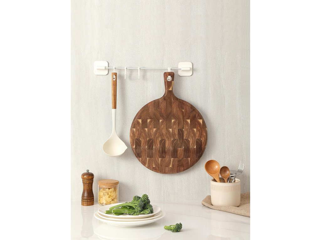 Stylowa, okrągła deska do krojenia wykonana z najwyższej jakości drewna akacjowego zachwyca trwałością i naturalnym usłojeniem. Dzięki praktycznej rączce z łatwością powiesisz ją na ścianie. Posłuży nie tylko do krojenia, ale też estetycznego serwowania.