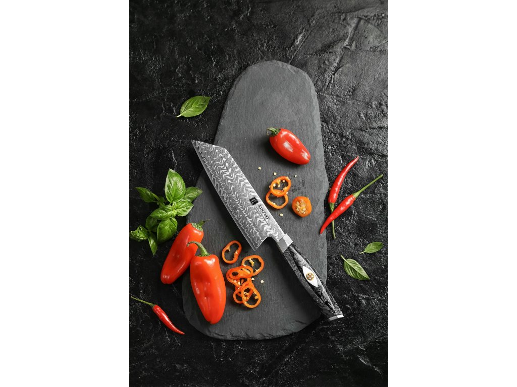 Zachwyca także nowoczesną rękojeścią z włókna węglowego i żywicy, która nadaje nożowi nie tylko wyjątkowy wygląd, ale także niezwykłe właściwości użytkowe. Każdy nóż z tej serii jest dodatkowo pakowany w luksusowe drewniane pudełko.