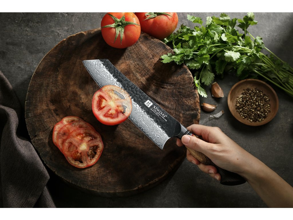 Ciekawostka: jako wiodący innowator w dziedzinie produkcji noży kuchennych XinZuo łączy ze sobą tradycyjne i najnowocześniejsze technologie. Dzięki zastosowanej nowatorskiej metodzie próżniowej obróbki cieplnej noże kuchenne XinZuo charakteryzują się - w porównaniu z nożami powstałymi przy wykorzystaniu standardowej obróbki cieplnej - większą twardością i ostrością, a ponadto dłuższą żywotnością. W połączeniu z tradycyjnym, wieńczącym proces produkcji ręcznym ostrzeniem noży przez mistrzów tego rzemiosła, których przekazywanemu z pokolenia na pokolenie kunsztowi nie może się równać żadna maszyna, skutkuje to tym, że noże kuchenne XinZuo są także wyjątkowo ostre. Noże ostrzone maszynowo nie mają szans na osiągnięcie tego poziomu ostrości.
