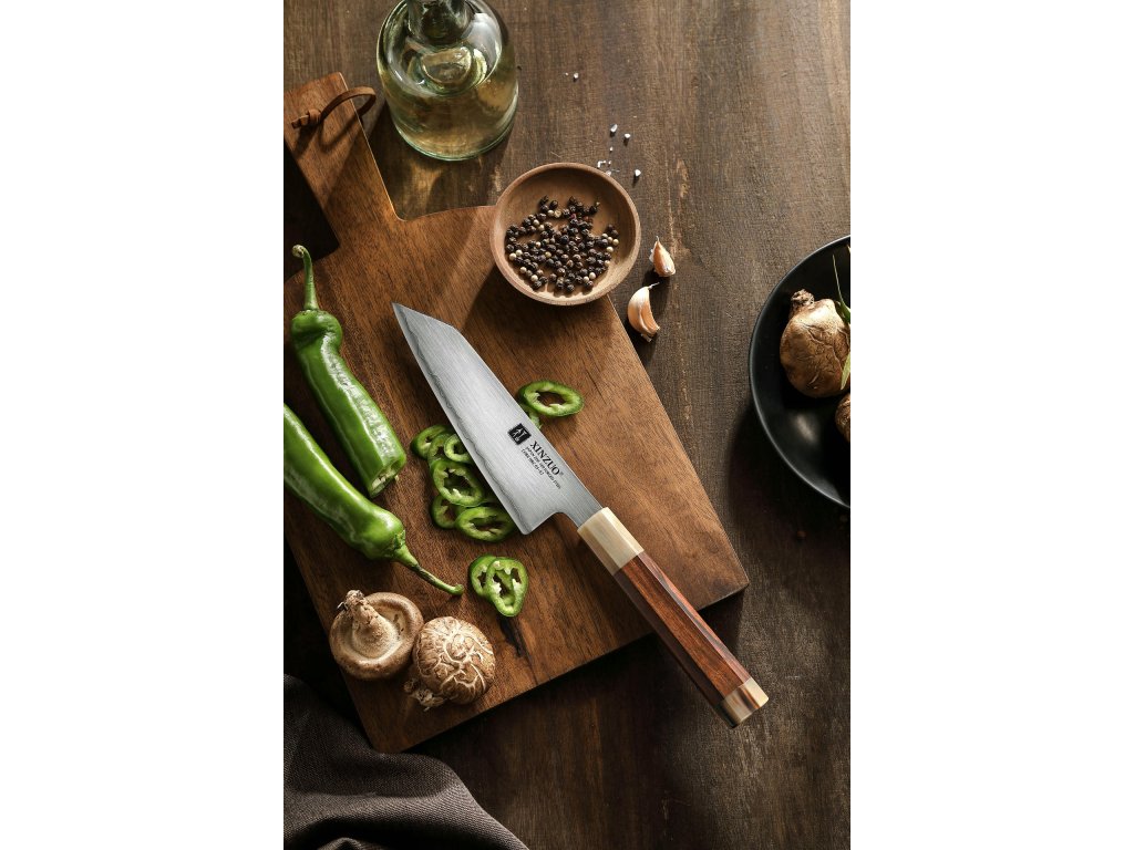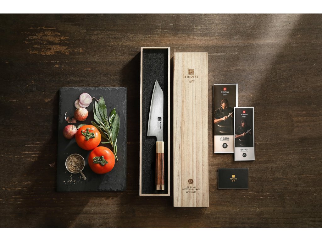 Seria noży XinZuo Zhen X05Z oddaje hołd tradycyjnemu japońskiemu stylowi noży kuchennych, łącząc go jednocześnie z nowoczesnym podejściem do wykorzystanych materiałów. Ostrze wyróżnia japoński minimalizm bez zbędnych zdobień. Jest ono produkowane z prawdziwej japońskiej stali ZDP-189 o ponadprzeciętnej twardości 65–67 HRC, która gwarantuje wyjątkową ostrość. Tradycyjna, ośmiokątna rękojeść - nieodłączny element noży japońskich - podkreśla ich autentyczny wygląd. Krojenie tymi nożami nie tylko sprawia przyjemność, lecz także napawa dumą. Wyjątkowość całej serii dopełnia luksusowe, drewniane pudełko.