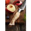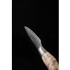 Prezentowany nóż do obierania produkowany jest z najwyższej jakości stali damasceńskiej (damascus steel), z której powstają noże klasy premium. Ostrze noża o twardości 60±2 w skali Rockwella składa się z 67 warstw stali. Jej wysoka jakość oraz tradycyjne metody produkcji zapewniają nożowi długą żywotność. Odcień wzoru na ostrzu może się nieco różnić od tego na zdjęciu, ponieważ stapianie warstw stali sprawia, że każdy nóż wygląda niepowtarzalnie.