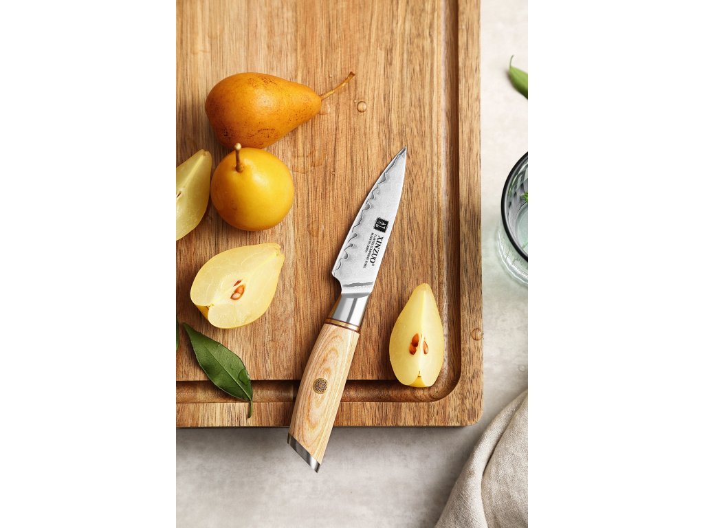 Nóż do obierania premium XinZuo Lan B37S 3,5" to perełka designu z ostrzem ze stali kompozytowej, rękojeścią z Pakkawood i świetną ergonomią.