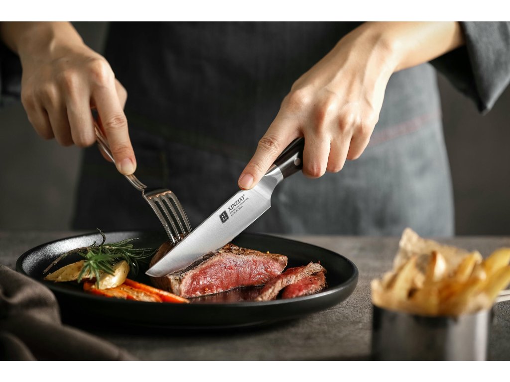 Noże do steków to podstawa, jeśli pragniemy wysokiej jakości doznań kulinarnych podczas jedzenia tej potrawy. Nie ma nic gorszego niż przeciągnięty stek i kiepski nóż, który poszarpie i uszkodzi mięso, co spowoduje wyciek wszystkich soków. Wysokiej jakości noże do steków XinZuo udowodnią ci, że stek można kroić zgrabnymi cięciami bez konieczności użycia dużej siły. Ze względu na zamiłowanie do mięsa, a zwłaszcza steków wśród Polaków, noża do steków nie powinno zabraknąć w żadnym domu.