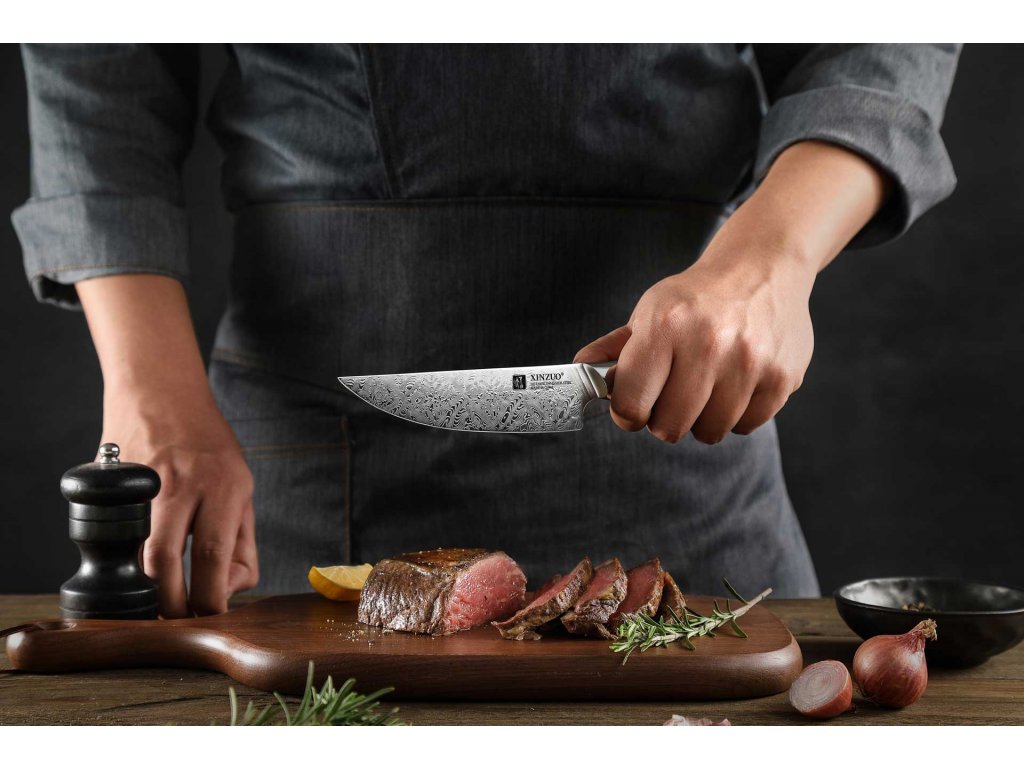 Noże do steków to podstawa, jeśli pragniemy wysokiej jakości doznań kulinarnych podczas jedzenia tej potrawy. Nie ma nic gorszego niż przeciągnięty stek i kiepski nóż, który poszarpie i uszkodzi mięso, co spowoduje wyciek wszystkich soków. Wysokiej jakości noże do steków XinZuo udowodnią ci, że stek można kroić zgrabnymi cięciami bez konieczności użycia dużej siły. Ze względu na zamiłowanie do mięsa, a zwłaszcza steków wśród Polaków, noża do steków nie powinno zabraknąć w żadnym domu.
