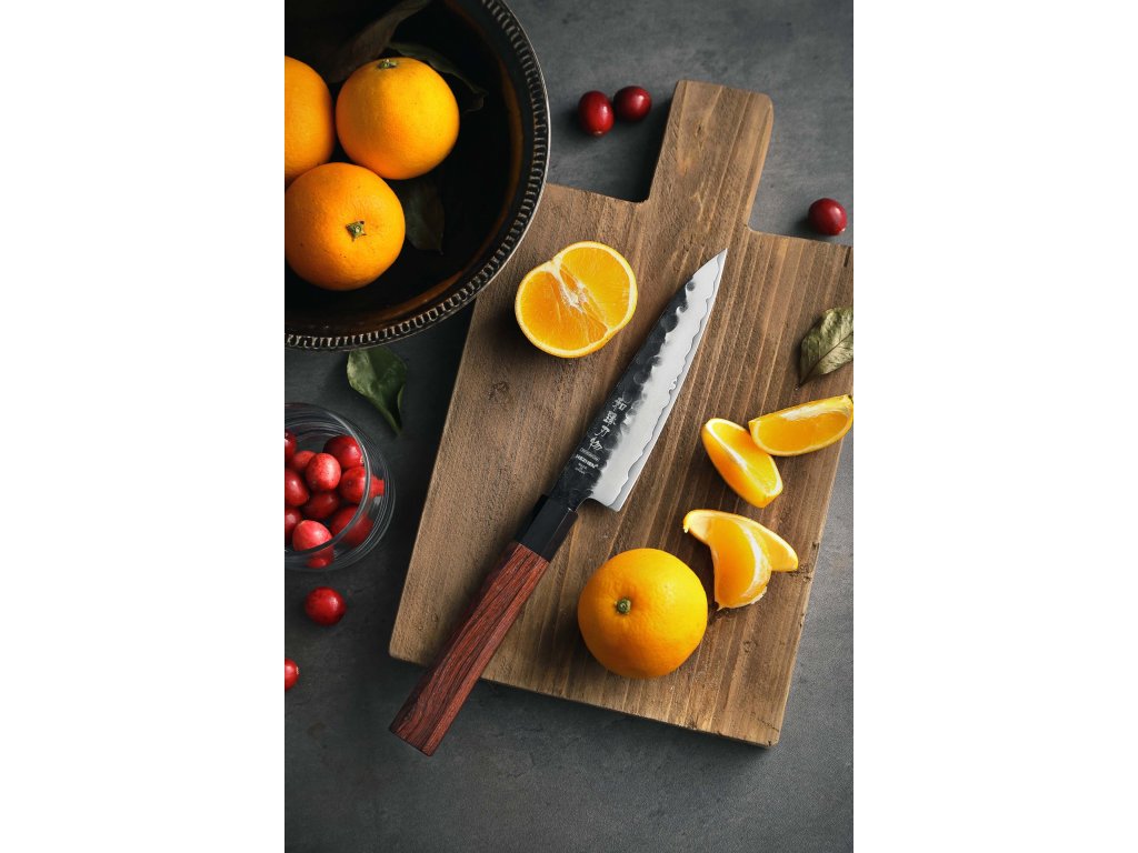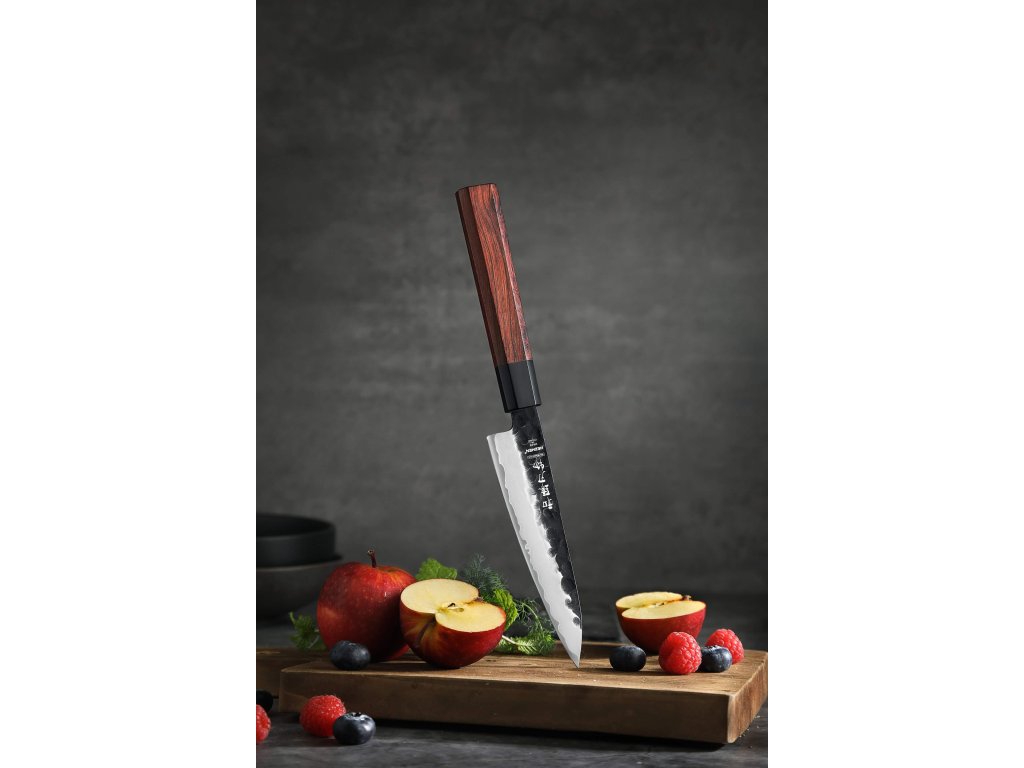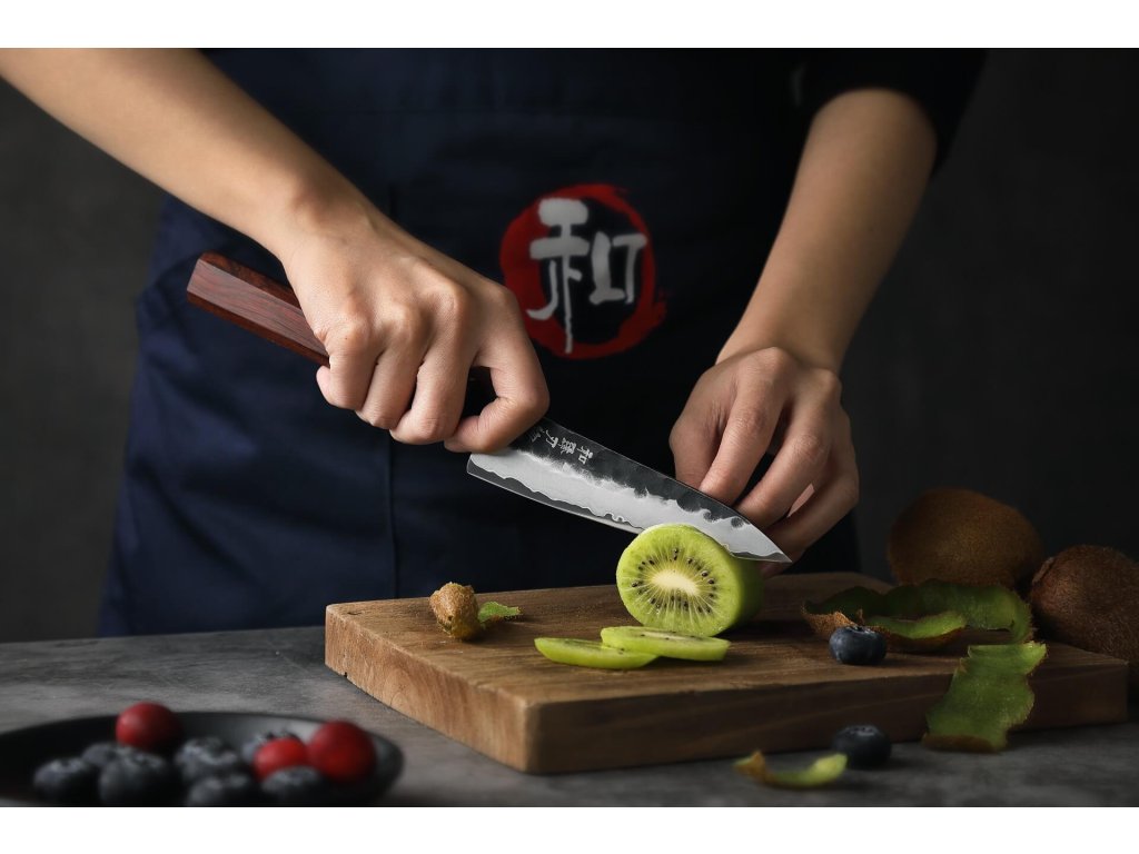 Specjalny nóż przeznaczony do obróbki warzyw i owoców. Korzystając z tego noża z łatwością pokroisz owoce i warzywa, nie niszcząc ich jednocześnie, tj. nie zgniatając nadmiernie, co mogłoby spowodować utratę większości zawierającego cenne witaminy soku. Nóż do owoców i warzyw marki XinZuo ma specjalnie zaprojektowane ostrze z wysokiej jakości ręcznie obrabianą krawędzią tnącą, ułatwiającą krojenie owoców i warzyw zgrabnymi, nie uszkadzającymi produktu cięciami. Noża do owoców i warzyw nie może zabraknąć w żadnym domu.