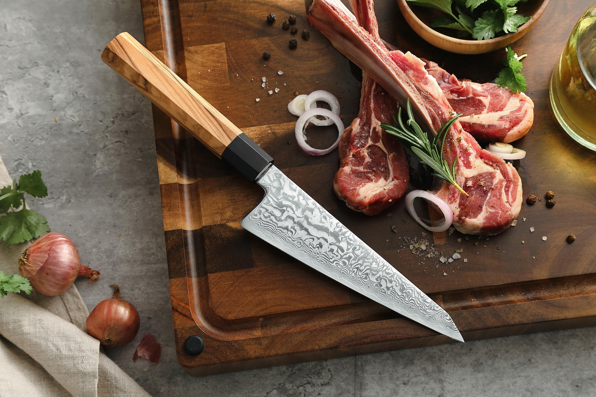 Rękojeść noża inspirowana jest tradycyjnymi japońskimi ośmiobocznymi rękojeściami, których kształt sprawdza się od setek lat. Osiem boków to gwarancja mocnego, stabilnego chwytu, nawet gdy dłoń jest mokra. Zapobiegają przesuwaniu się rękojeści podczas krojenia.
