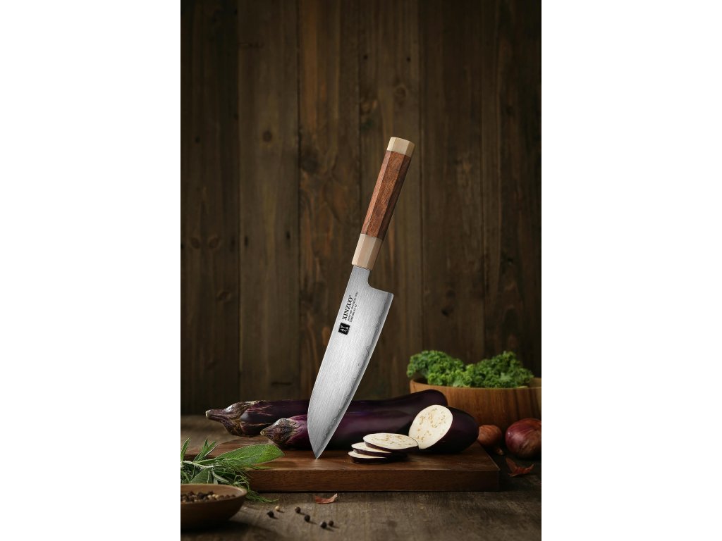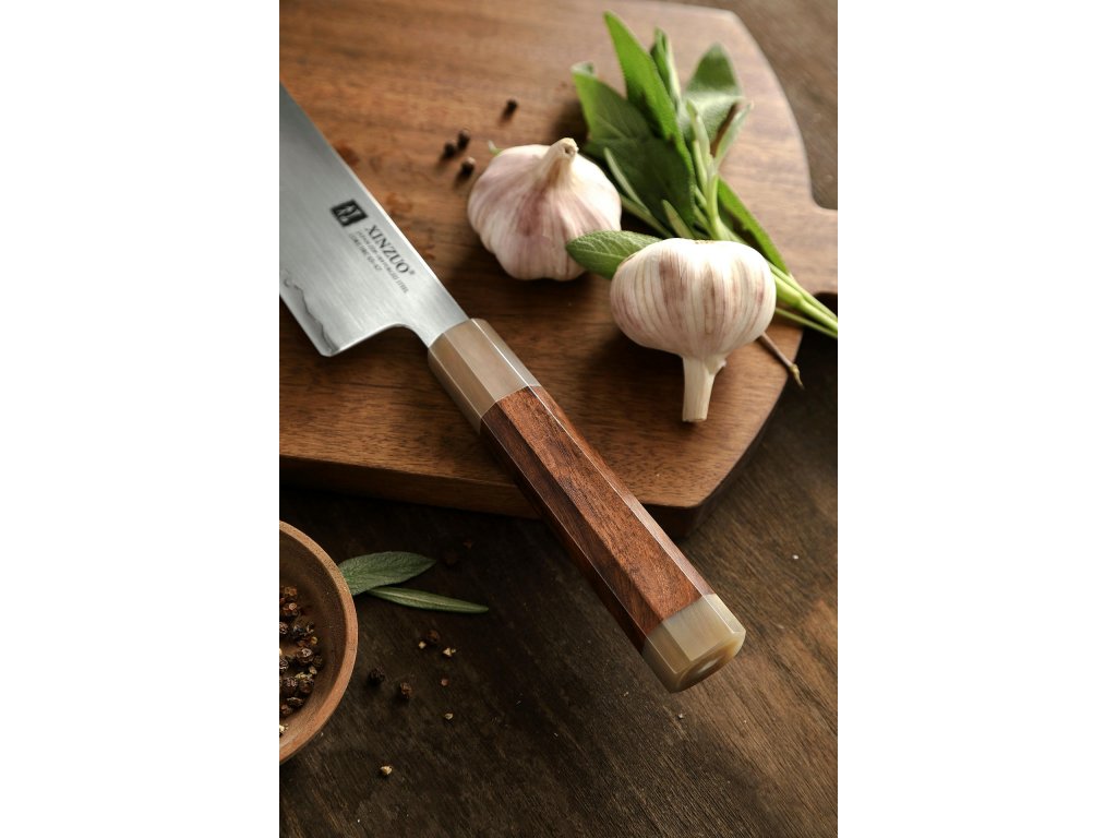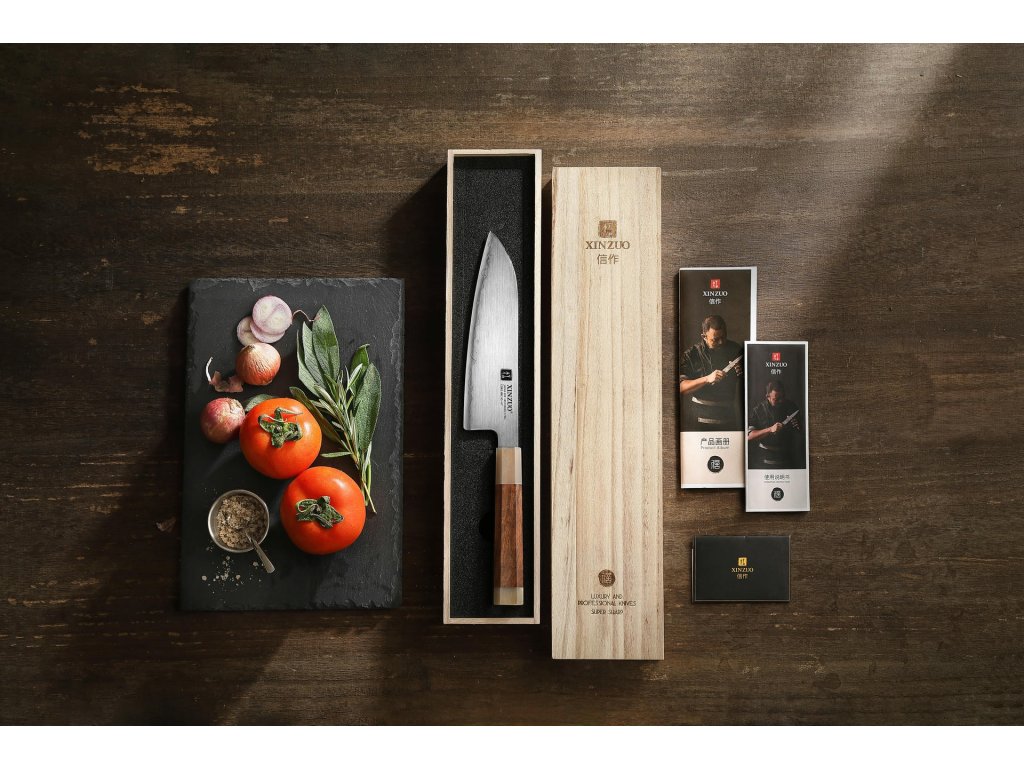 Seria noży XinZuo Zhen X05Z oddaje hołd tradycyjnemu japońskiemu stylowi noży kuchennych, łącząc go jednocześnie z nowoczesnym podejściem do wykorzystanych materiałów. Ostrze wyróżnia japoński minimalizm bez zbędnych zdobień. Jest ono produkowane z prawdziwej japońskiej stali ZDP-189 o ponadprzeciętnej twardości 65–67 HRC, która gwarantuje wyjątkową ostrość. Tradycyjna, ośmiokątna rękojeść - nieodłączny element noży japońskich - podkreśla ich autentyczny wygląd. Krojenie tymi nożami nie tylko sprawia przyjemność, lecz także napawa dumą. Wyjątkowość całej serii dopełnia luksusowe, drewniane pudełko.