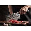 - Nóż szefa kuchni: Noże szefa kuchni cieszą się popularnością z uwagi na swą wszechstronność; nie inaczej jest w przypadku XinZuo Lan. Kształt ich ostrza i krawędzi tnącej powoduje, że sprawdzą się zarówno podczas krojenia owoców i warzyw, jak i mięsa. Do pewnego stopnia zdoła zastąpić cały szereg specjalistycznych noży.