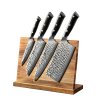 Zestaw noży kuchennych XinZuo Yu B13H zawiera 4 praktyczne noże, w tym nóż TAO z ręcznie obrabianym ostrzem ze stali damasceńskiej i stojak magnetyczny na noże z drewna akacjowego.